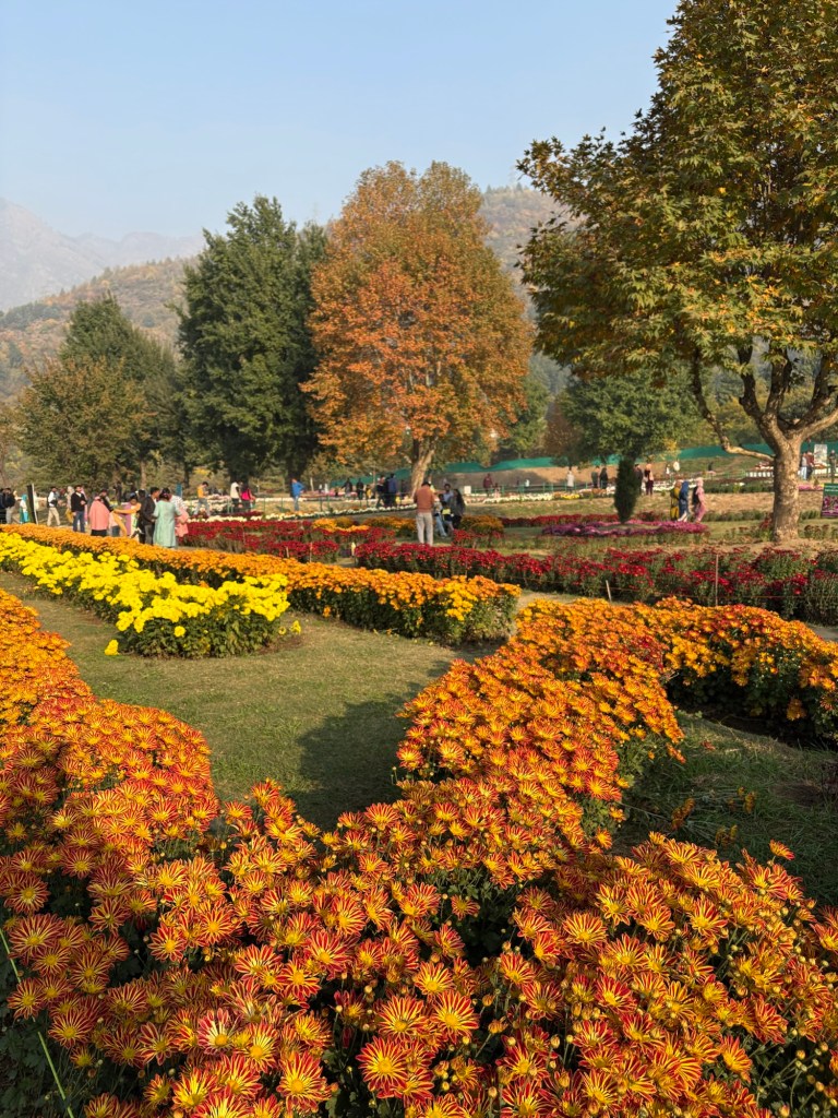 Usually, valley’s gardens went quiet post summer but this floral resurgence seemed to have revived not just landscape but also local spirits. With tourists and locals flocking in for walk through rows of flowers has given autumn a new spark of life. This revival of tourist season reflects as conscious effort by the Department of Floriculture, Gardens & Parks, J&K for extending Kashmi’r tourism calendar beyond the famed Tulip garden. The Chrysanthemum theme graden showcases dozens of varieties including Jasoda Purple, Flavio, Nowara Red, Manga Red, Cesar Apricot and many more.