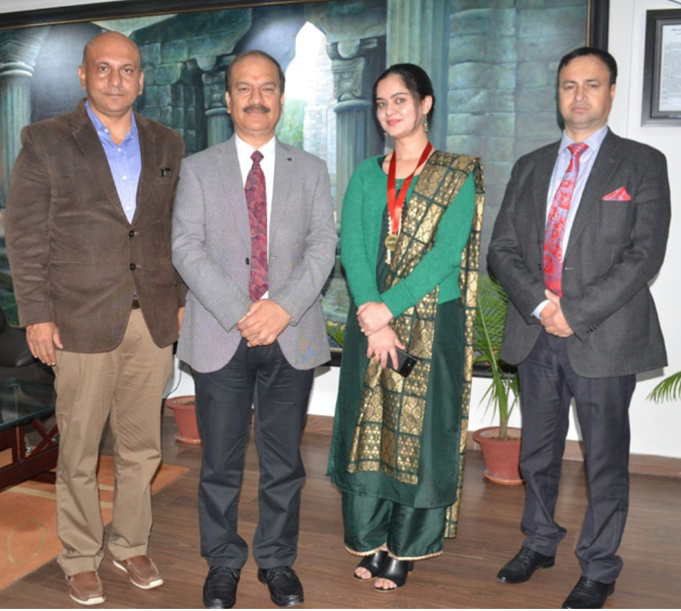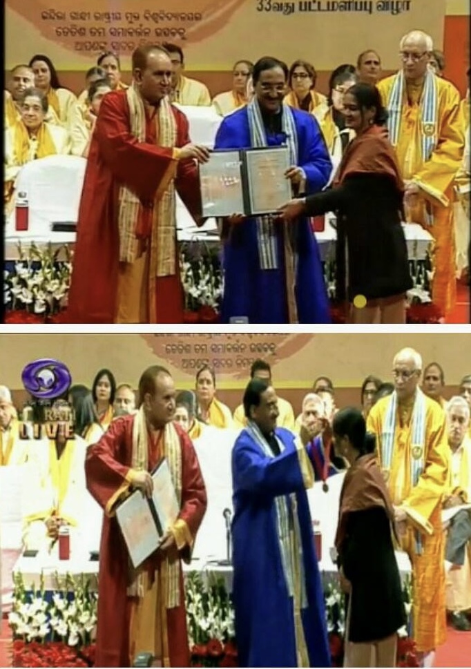 Hardeep Kour Bali was awarded gold medal at the 33rd convocation of Indira Gandhi National Open University (IGNOU), the largest Open University in the world at Baba Saheb Ambedkar Convention Centre, IGNOU Campus, New Delhi by Ramesh Pokhriyal “Nishank”, Minister of Human Resource Development, Government of India.(2020)